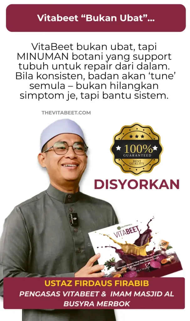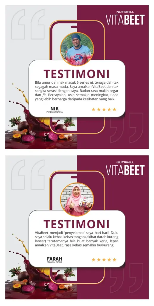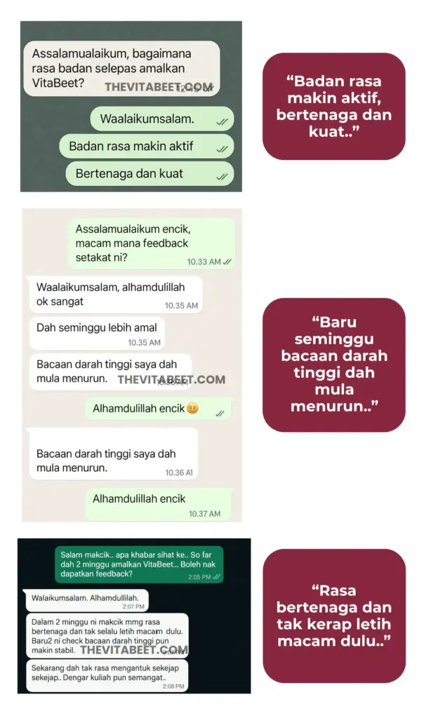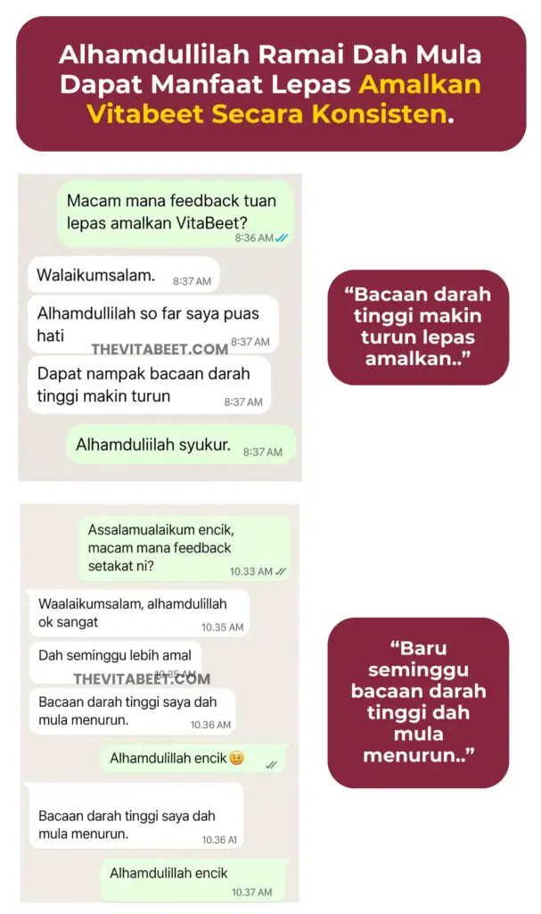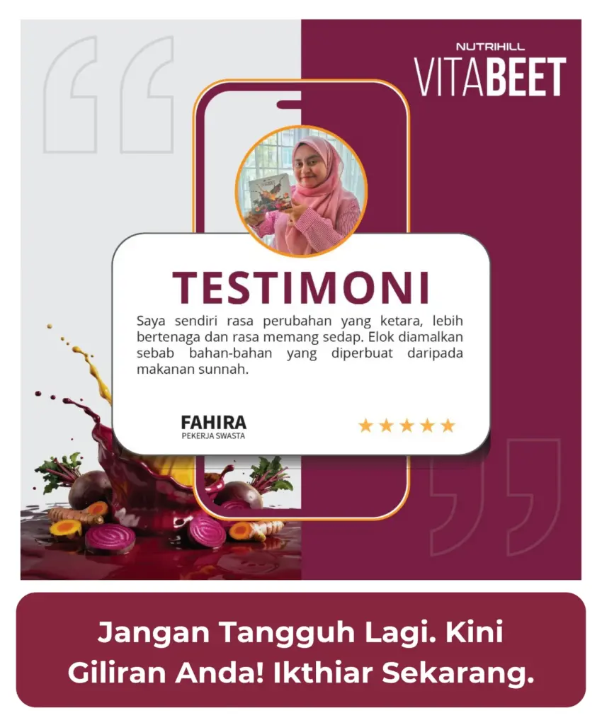 “Kalau saya dah beli Vitabeet ni, dah amalkan dengan konsisten, tapi saya masih tak puas hati sebab tak ada sebarang perubahan positif macam mana?”