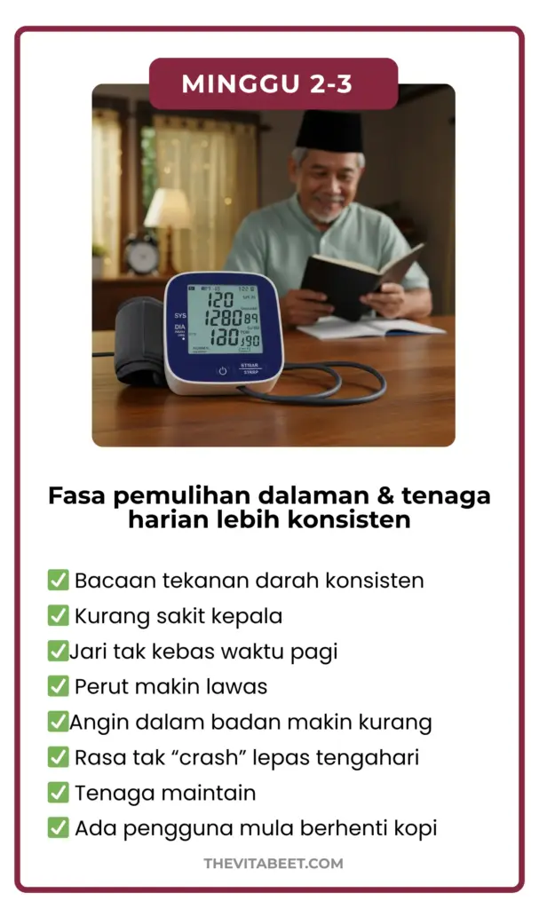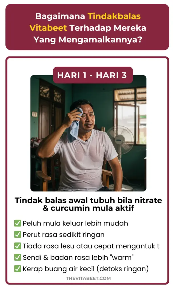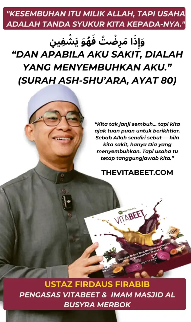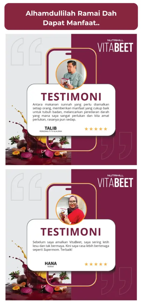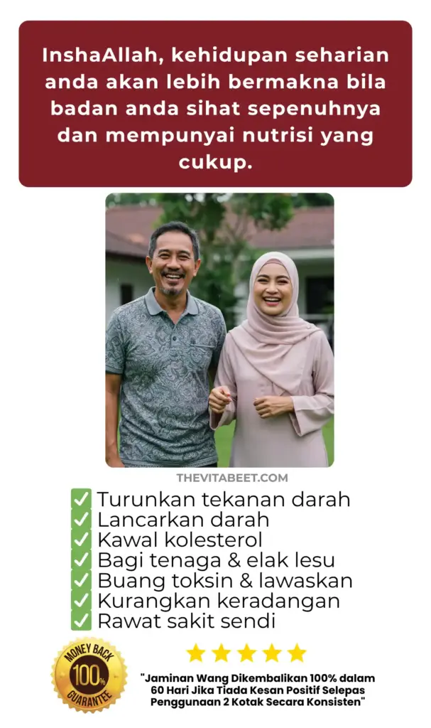 “Kalau saya dah beli Vitabeet ni, dah amalkan dengan konsisten, tapi saya masih tak puas hati sebab tak ada sebarang perubahan positif macam mana?”